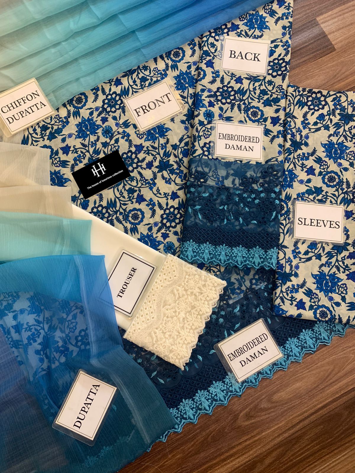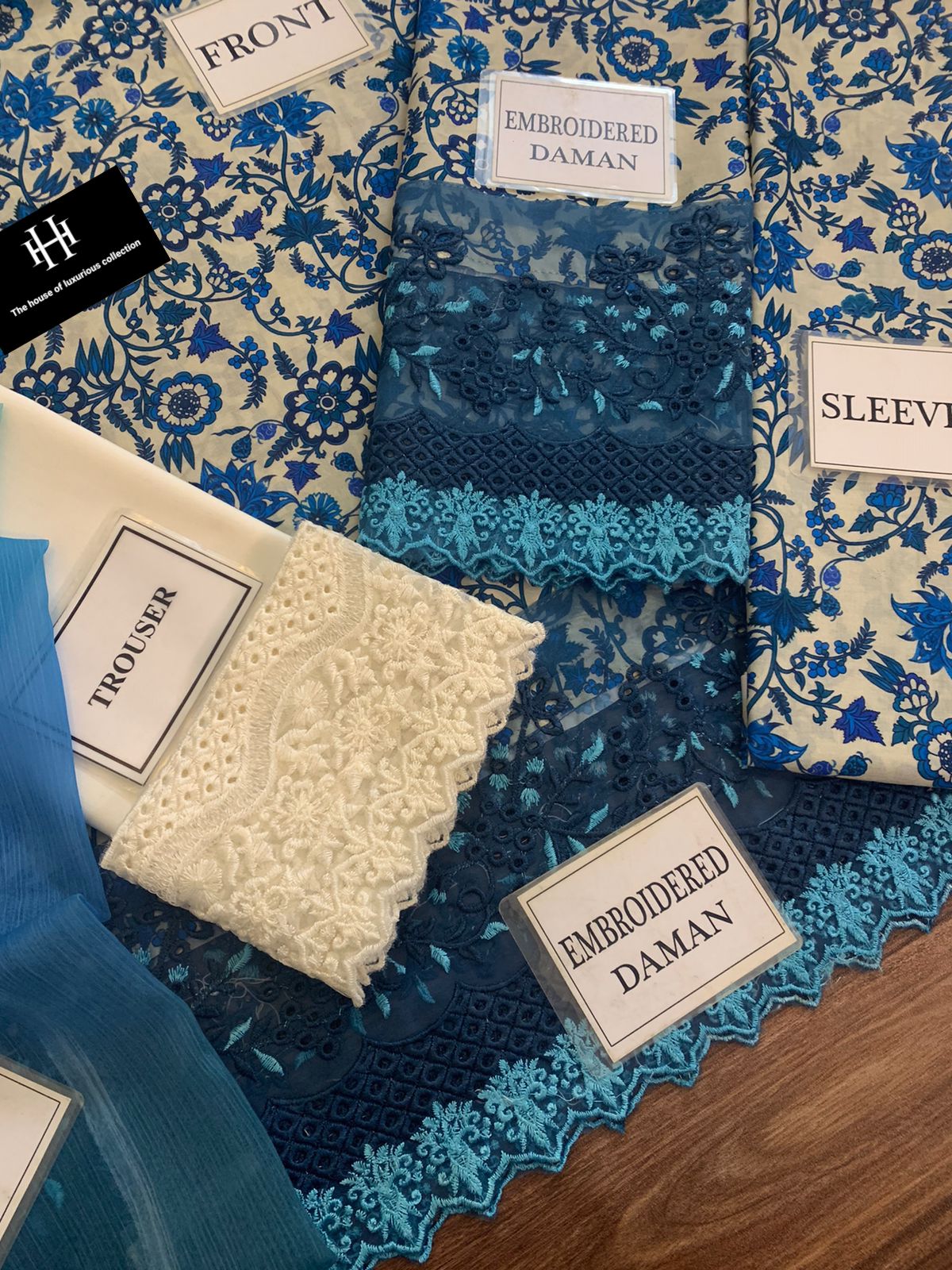 Printed Lawn With Embroidery Organza Daman Attached on Ghaar
