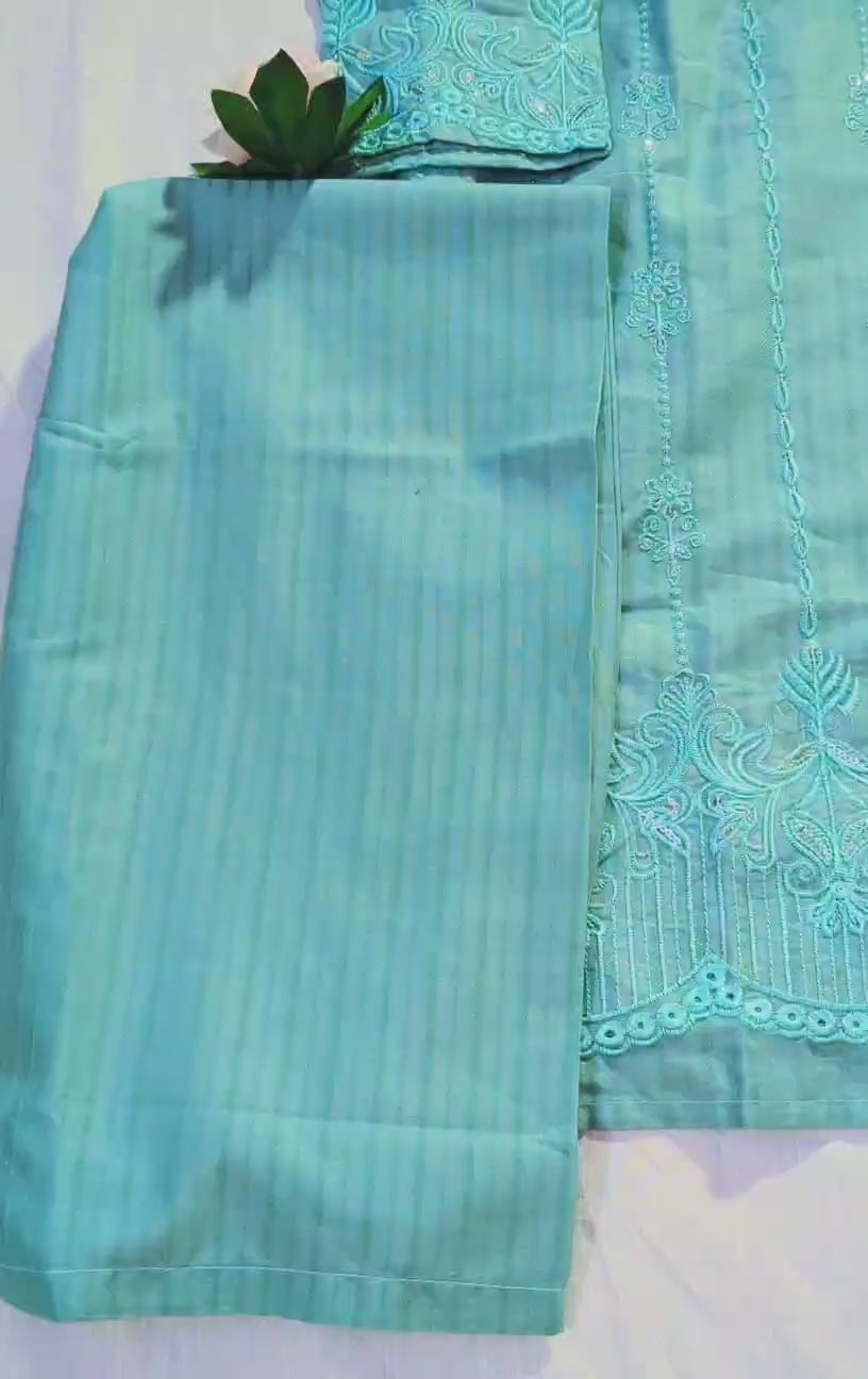 3 PC stitched suit, 6 different colors, embroidered daman, printed dupatta, lining trouser